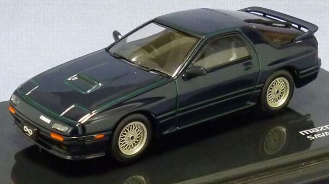 エムテックホビーシリーズH05C、1/43 マツダ サバンナ RX-7 (FC3S)です。カラー:緑メタ、2002年製造品、中国製です。紙パッケージ、クリアケース付(共に擦れあります)。 1990年以降のシェイドグリーンのアンフィニです。世界中にファンのいるロータリー・スポーツです。
