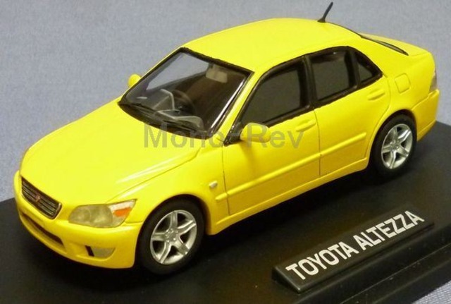 1999年発売品、エムテックM4シリーズM4-01B、1/43 トヨタ アルテッツァ(SXE10)です。カラー:スーパーブライトイエロー、中国製です。紙パッケージに傷みあり、クリアケースに擦れがございます。また、塗装などの仕上げにばらつきがあります。 国内ではアルテッツァとして登場、海外ではレクサスISとして販売されたFRセダンです。ワゴン風ボディのジータも途中でラインナップに登場しました。
