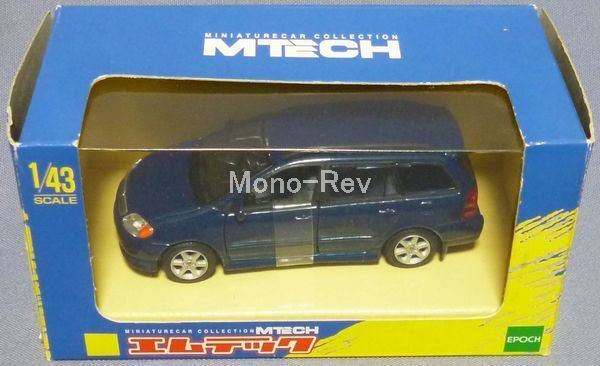 エムテックT-02-C トヨタ カローラ フィールダー 2001年発売品、中国製です。スケール1/43(車体長さ約96mm)。前ドアが開閉できます。車体カラー:ブルー(ダークブルーマイカメタリックをイメージしたもので、いわゆる紺メタです)。傷みのあるパッケージ付き。