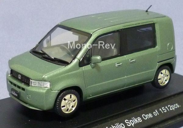 初代フィットをベースにしたミニワゴン車モビリオ。さらに趣味性を重視し5人乗り仕様にした派生車種スパイクです。2002年9月から2004年2月までの前期型をモデル化しています。