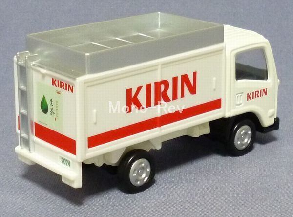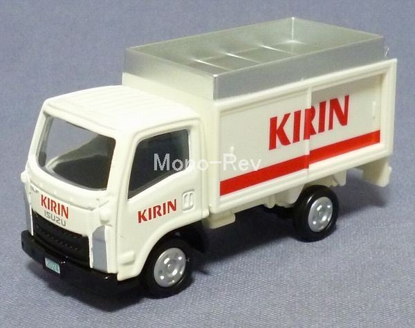 2024年キリンビバレッジ懸賞非売品、いすゞ エルフ ルートラックです。抽選当たるA賞で5000台配布されました。スケール1/55くらい(全長約89㎜)、荷台左側面後部スライドドア開閉ギミックあり、中国製です。少し傷みのあるパッケージ付き、当選手紙は付きません。モノ レブYouTubeチャンネル第150回でご紹介のミニカーです。