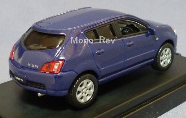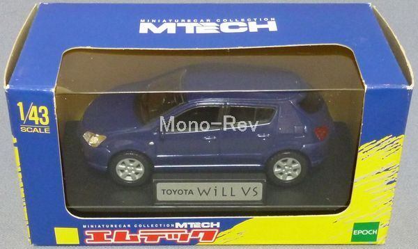 エムテックT-16-A トヨタ WILL VS 2001年発売品、中国製です。スケール1/43(車体長さ約100mm)。開閉アクションはありません。車体カラー:パープルです。擦れのあるパッケージ付き。