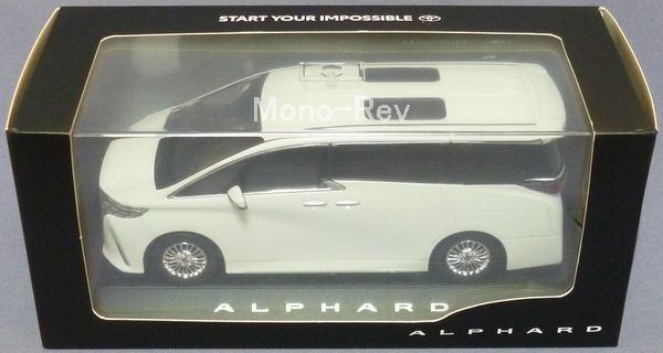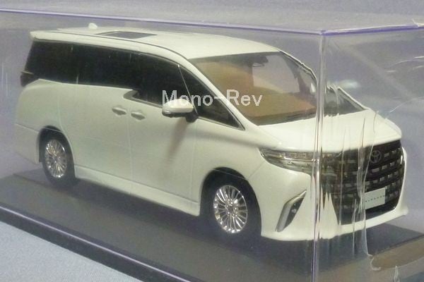 1/30 トヨタ アルファード AAHH45W 店頭展示用色見本です。ボディカラーはプラチナホワイトパールマイカメタリックです。紙パッケージに若干の擦れや汚れ、シュリンク未開封品です。(一部剥がれあり)。2023年6月モデルチェンジ車のハイブリッド エグゼクティブラウンジ E-Fourをモデル化しています。