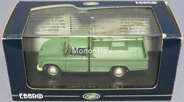 エブロ43987 日産 ジュニア トラック (40型) 1962 です。ボディカラー:緑、紙パッケージ(擦れあり)、クリアケースつき(擦れあり)、2009年発売品です。