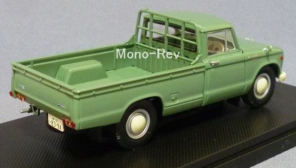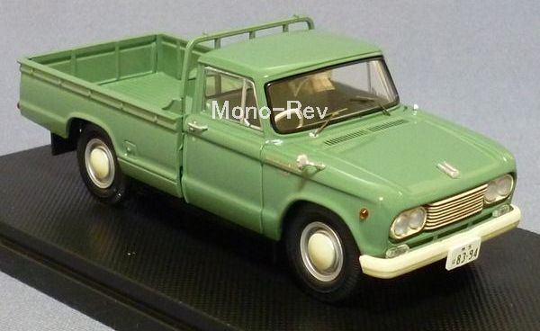 40型日産ジュニアは1962年モデルチェンジの3代目です。2トン積み(40型)はセドリックと同じH型1883㏄85psエンジンを搭載、1.5トン積み(N40型)はG型1488㏄71psエンジンでした。1964年にSD22ディーゼル車を追加。1965年10月のマイナーチェンジで2トン積み(41型)はH20エンジン1982㏄92ps、1.5トン積み(N41)はR型1595㏄75psに変更。ミニカーはフェンダーに2000のバッジが付いており、グリルの形状に近いものを考慮すると1967年型のモデル化と思われます。