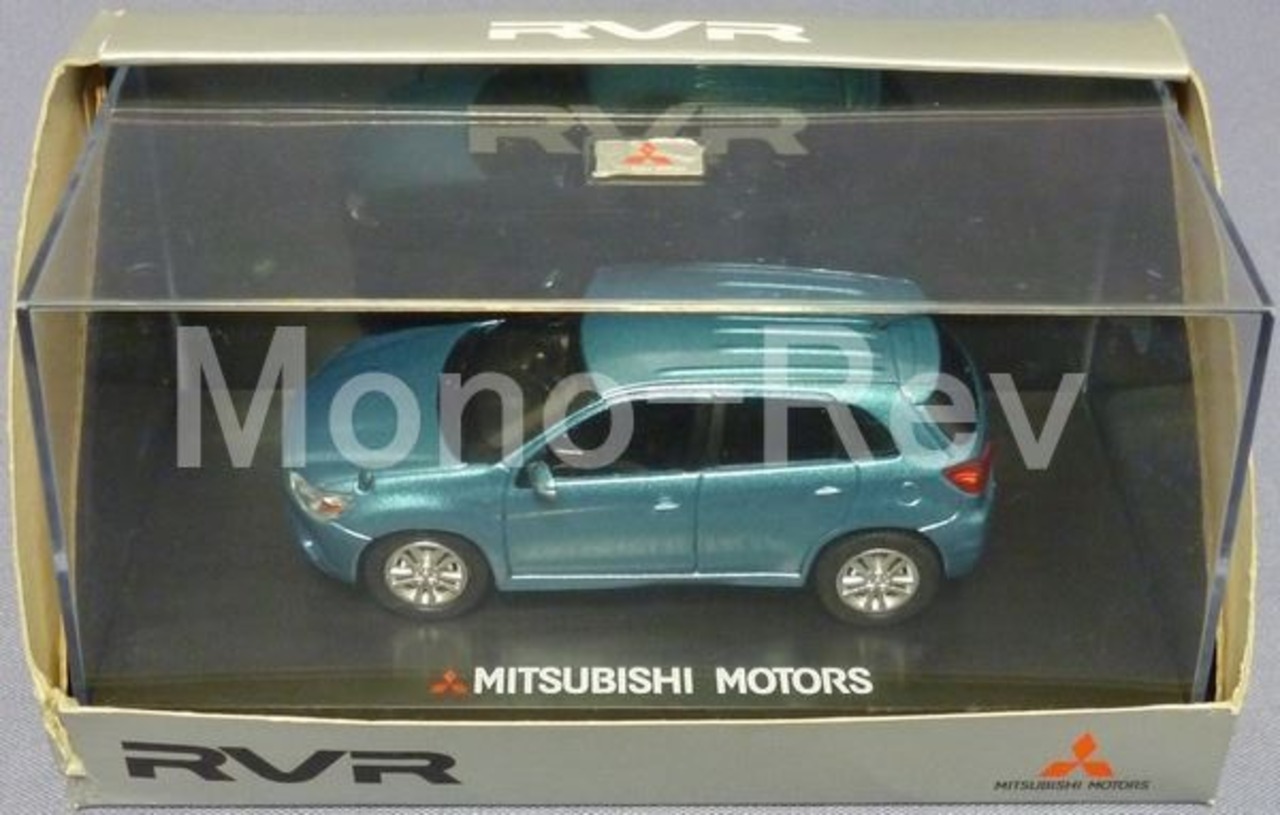三菱 RVR 青メタ GA3W 1/43 三菱自動車配布品(おそらくサンスター社製)、中国製です。スケール1/43(全長約100㎜)、ボディカラー:青メタ(カワセミブルーメタリックをイメージ)、クリアケース(擦れあり)、紙パッケージ付き(端に破れあり、擦れ汚れあり)。