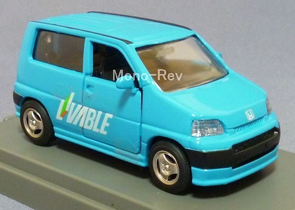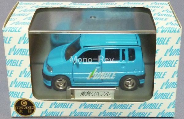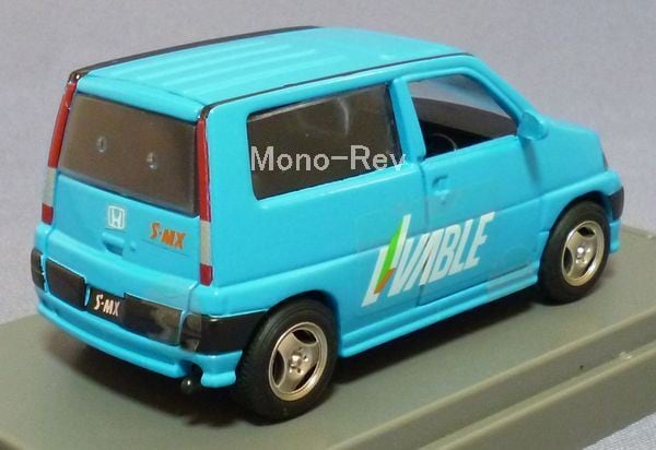 エムテック 東急リバブル ホンダ S-MX (RH1)、日本製です。スケール1/43(車体長さ約89mm)、左右の前ドア、リヤが開閉します。車体カラー:明青、専用外パッケージ(擦れや汚れ有)、クリアケース(擦れあり)付属。