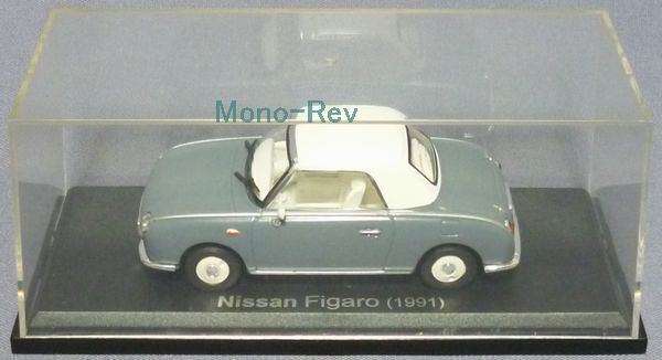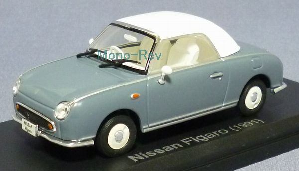 ノレブ1/43 日産 フィガロ (E-FK10)です。ボディカラー:ラピスグレー、表示スケール:1/43(前バンパーからスペアタイヤまでで約85mm)、中国製です。クリアケースつき。アシェットコレクションジャパン社から発売の書籍「国産名車コレクションVol.85」に付属のクルマです。