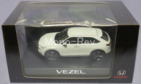 HC(ホンダコムテック)特注1/43 ホンダ ヴェゼル RV5/RV6(4WD)です。 2021年製造品、中国製です。ボディカラー:パール白(プレミアムサンライトホワイトパール)、スケール1/43(全長約100mm)、クリアケース、紙パッケージ付きで未開封品です(保護材のフィルムには擦れや汚れがございます)。一般販売のほか新車販売時に配布されました。2021年4月23日発売の2代目ヴェゼル e:HEV Zをモデル化しています。