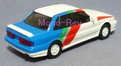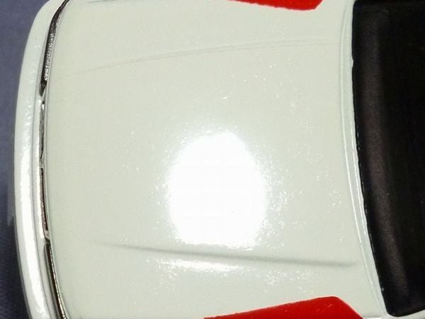 1/40 三菱 ギャラン ラリーバージョン VR-4 RS E38A 三菱自動車配布品です。全長約114㎜、白地のボディに赤/銀/緑/青のラインが塗装で入っています。内装も再現されています。左リヤのホイールアーチ部に小傷あります、フロントフードや屋根などの塗装にプツプツやざらつきがあります。6代目ギャランのハイパフォーマンス仕様、VR-4は1988年7月からWRCラリーに参戦、1992年までWRC通算6勝したクルマで、それを記念したミニカーのようです。未使用シール付属(貼り付け用図面も付属)、箱付き、日本製です。