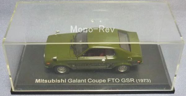 1/43 三菱 ギャラン クーペ FTO GSR A63NGW、フランスのメーカー・ノレブの製品で中国製です。ボディカラー:暗緑、スケール1/43(全長約85mm)、クリアケース付き。アシェットコレクションジャパン社から発売の書籍「国産名車コレクションVol.7」に付属のクルマです。画像のクリアケース(擦れあり)入り状態のものをお届けいたします。