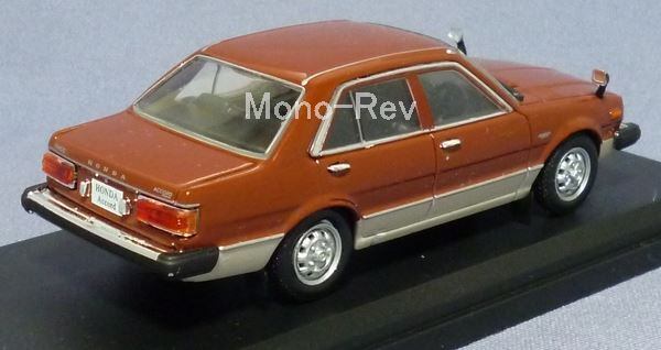 1/43 ホンダ アコード サルーン E-SM、フランスのメーカー・ノレブの製品で中国製です。ボディカラー:マルーン/明灰の2トーン(右側面やトランク部塗装にプツプツや凸凹あり、右ドア下の明灰部に塗装不良ありで状態はあまりよくありません)、スケール1/43(全長約100mm)、クリアケース付き。アシェットコレクションジャパン社から発売の書籍「国産名車コレクションVol.34」に付属のクルマです。画像のクリアケース入り状態のものをお届けいたします。
