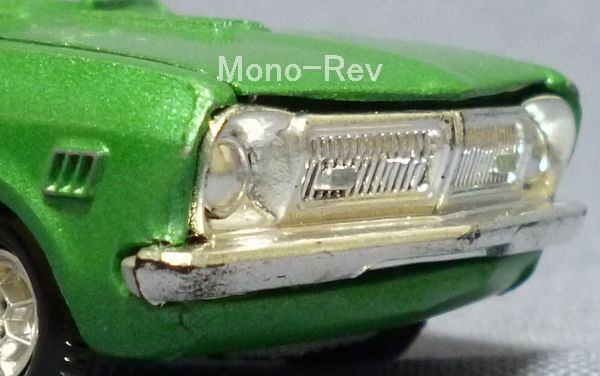 ダイヤペット0301 日産 ダットサン サニー エクセレント 1400 クーペGX (KPB210GFK)です。1975年5月発売品。ボディカラー:緑メタ、前後バンパーメッキに擦れあり、フロントフード塗装が荒れています。エンブレム部やフェンダーアーチフレア部、フェンダーウィンカー部に擦れがありますがまずまずの状態です。パッケージ無し、本体のみをお届けします。